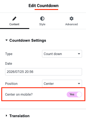 - Added missing center alignment option for countdown element on mobile [ Screenshot ]