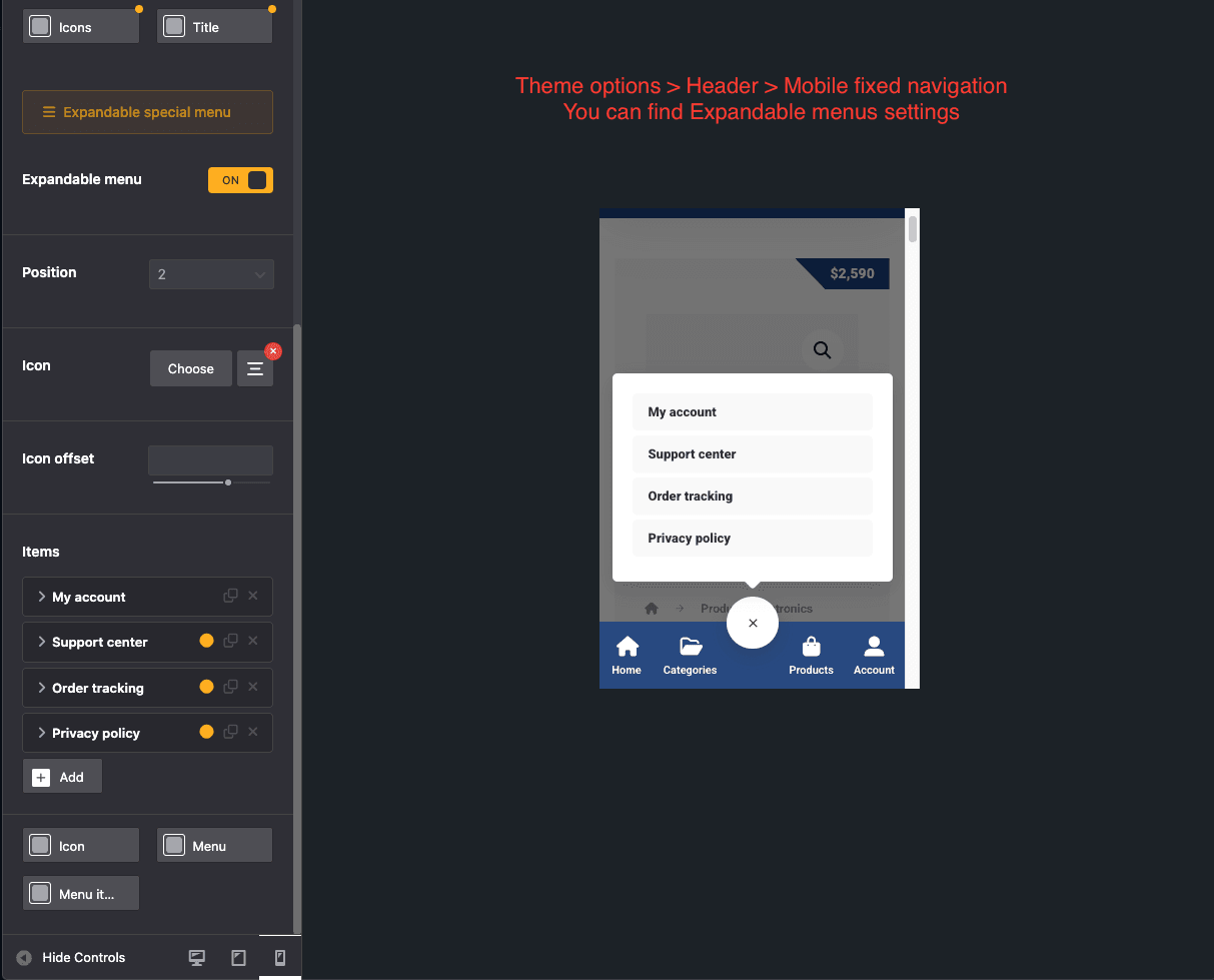 - Added Special Expandable Menus to mobile fixed navigation [ Screenshot ]