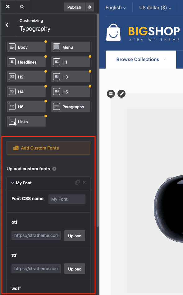 - Added font uploader for adding custom font to your site (Options > Typography) [ Screenshot ]