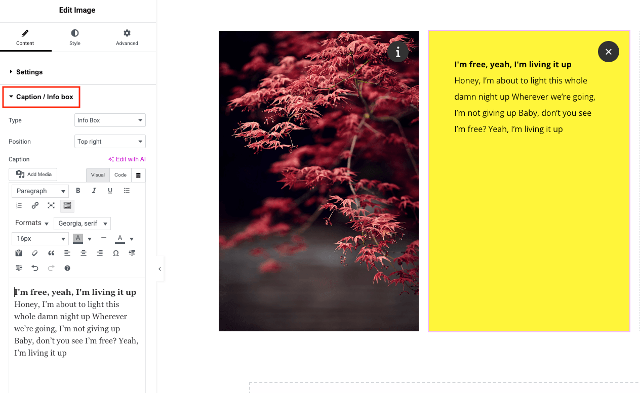 - Added info box settings for image elements in four positions [ Screenshot ]