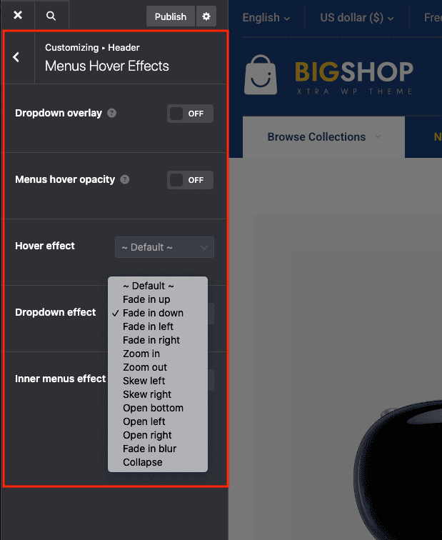 - Added 30+ hover effects for menus (Options > Header > Menu Hover Effects) [ Screenshot ]