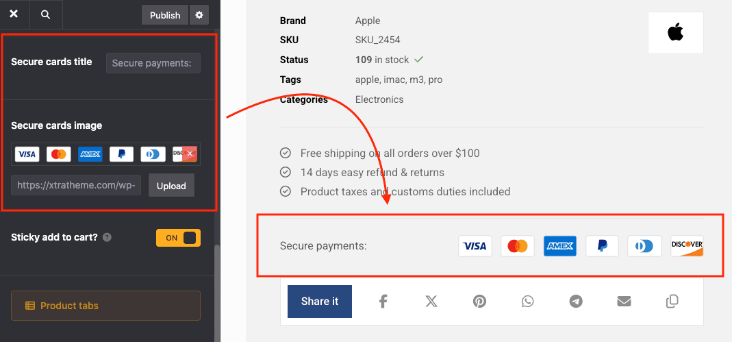 - Added WooCommerce secure payment info section in single product page [ Screenshot ]