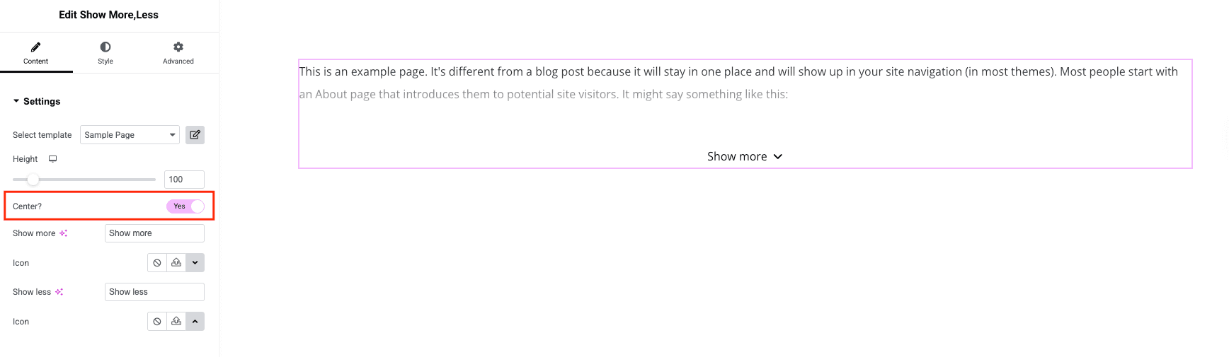 - Added center mode option for Show More/Less element [ Screenshot ]