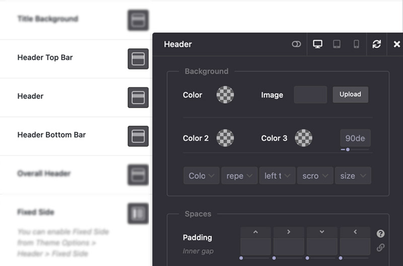 If you want to change background image or color of overall header section, you can do it with this StyleKit.