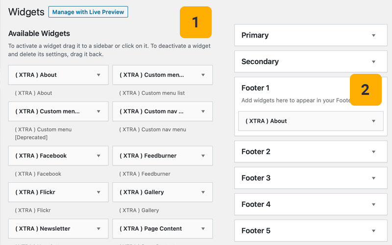 - Custom Content – If you want to add custom page content as footer widget, you can create a page and add your content then publish it. From Appearance > Widgets you can find and add custom content widget.