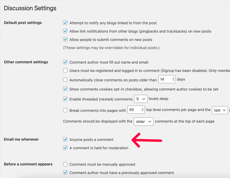 Disable comments on all posts – If you want to disable comments form on all single posts, then go to Dashboard > Settings > Discussion and disable comments and change comments settings.