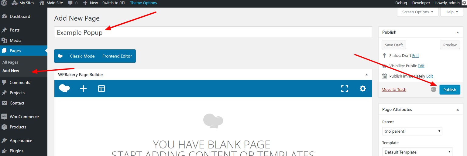 - How to load popup on all pages? – Create a new custom page and name it for example popup, then add popup element and inside it add other elements. Then publish page. Now go to Theme Options > Header > Header and add custom page element and choose your popup page, Now all pages have your popup content and you can call it with hashtag link.