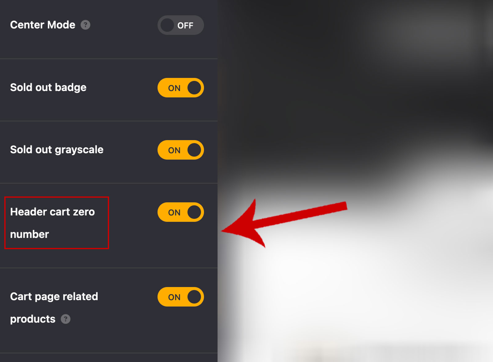 Under Theme Options > WooCommerce Pro > Products Settings you can turn on Header cart zero number feature, the exact path is shown in the screenshots.