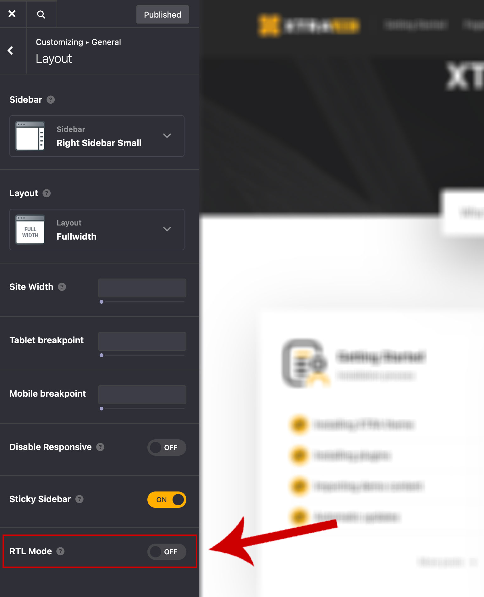 If your site is LTR, then you need to disable the RTL mode, and if your site is RTL, you need to turn this mode on. The Disable/Enable steps are explained in the following guide screenshots. Theme Options > General > Layout > RTL Mode.