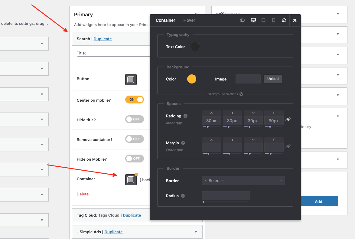 sidebartheme optionswidgetwidgets