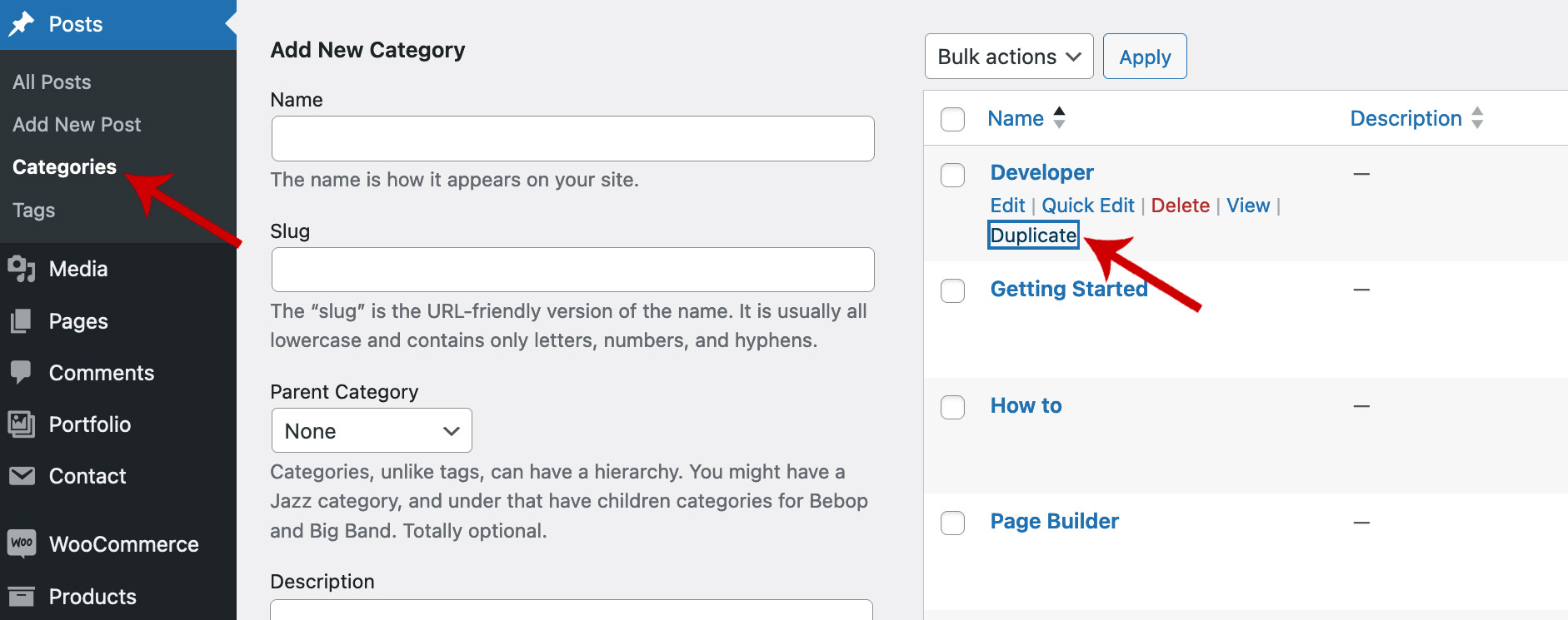 You can duplicate all kinds of categories,posts, pages, and widgets, and just go to the desired path and click on duplicate. We have shown this in the screenshot of the guide below.