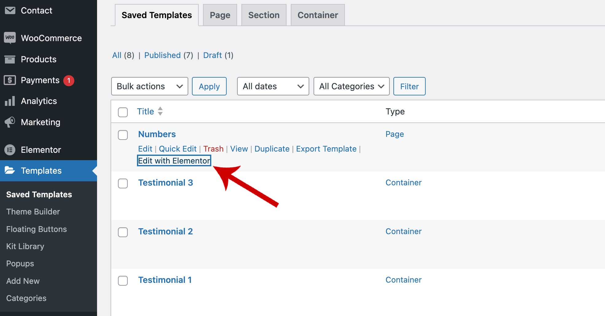- To use the template on another page, go to the page you want to edit with Elementor.