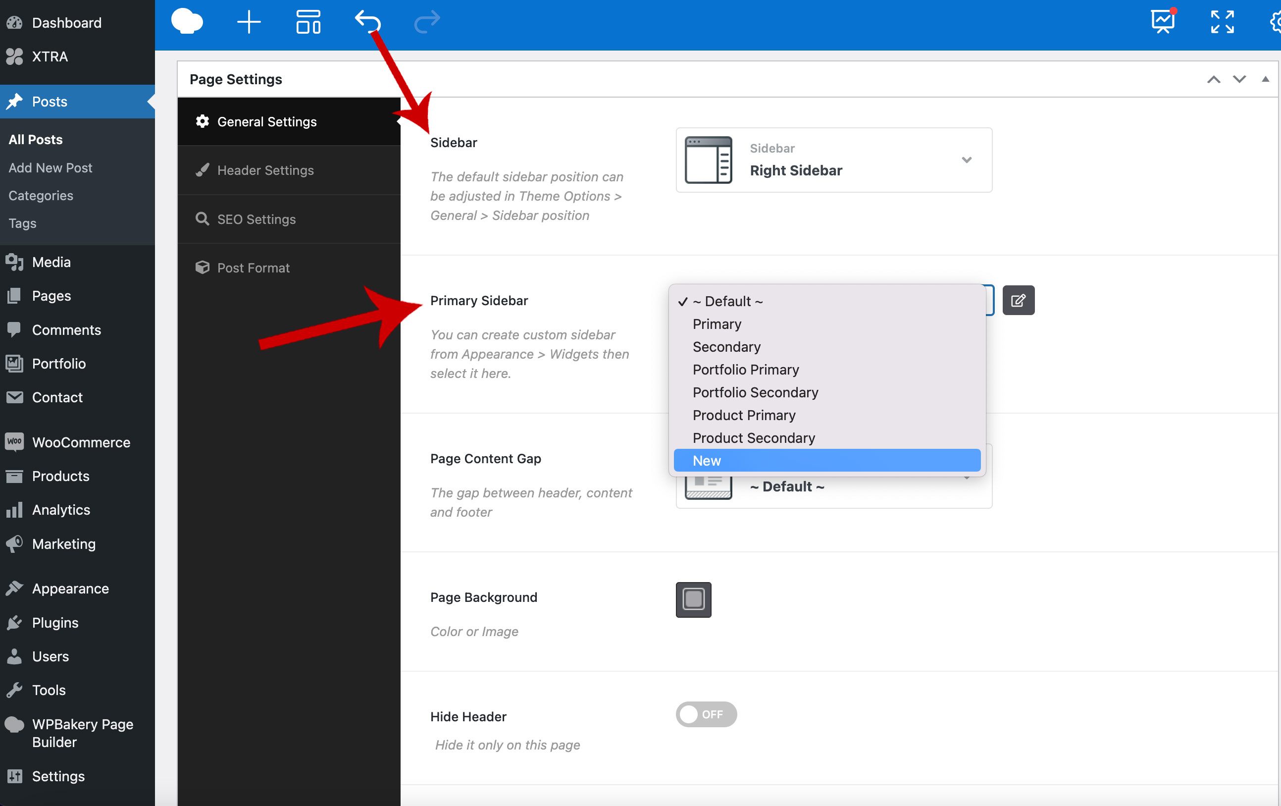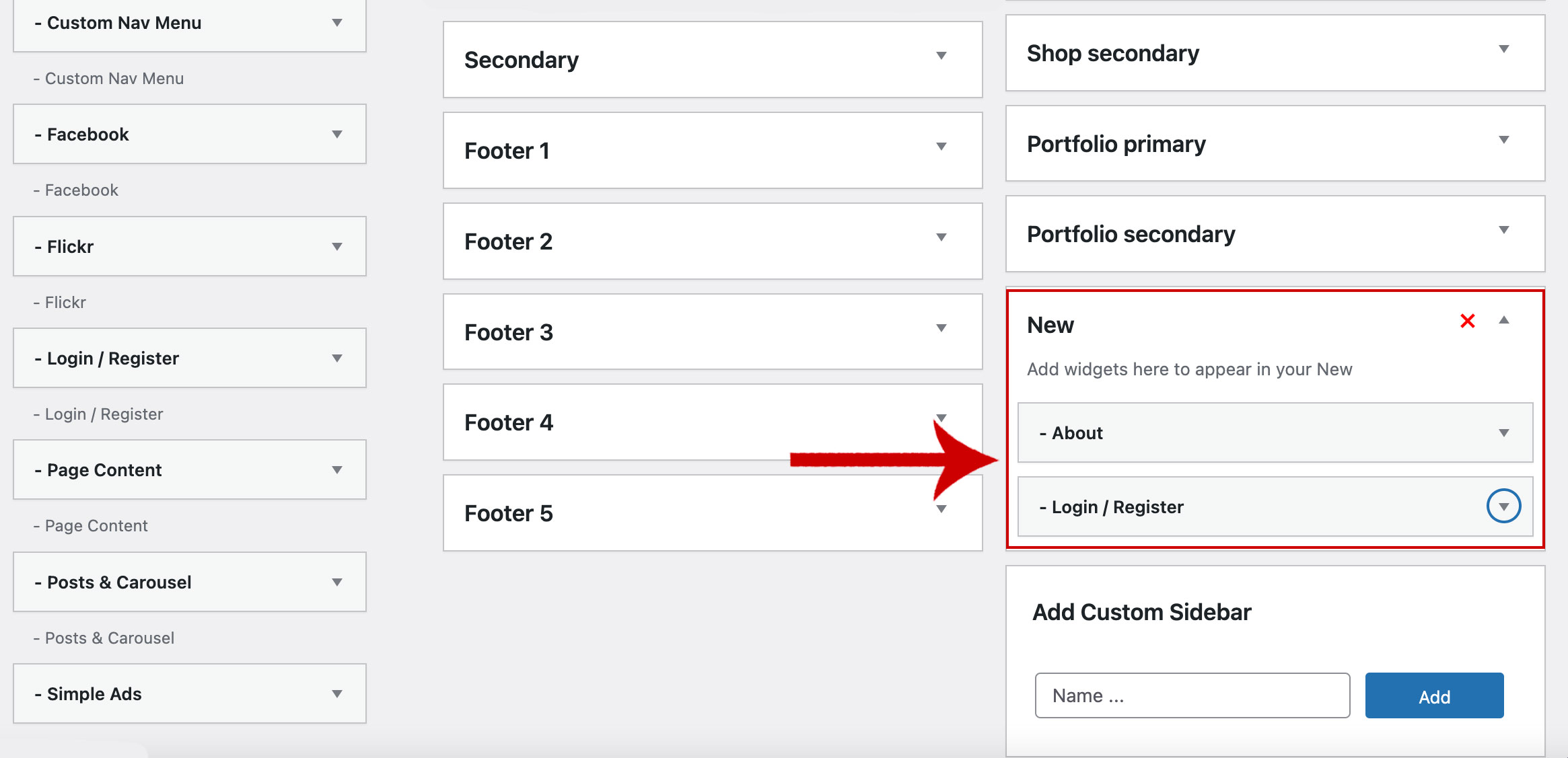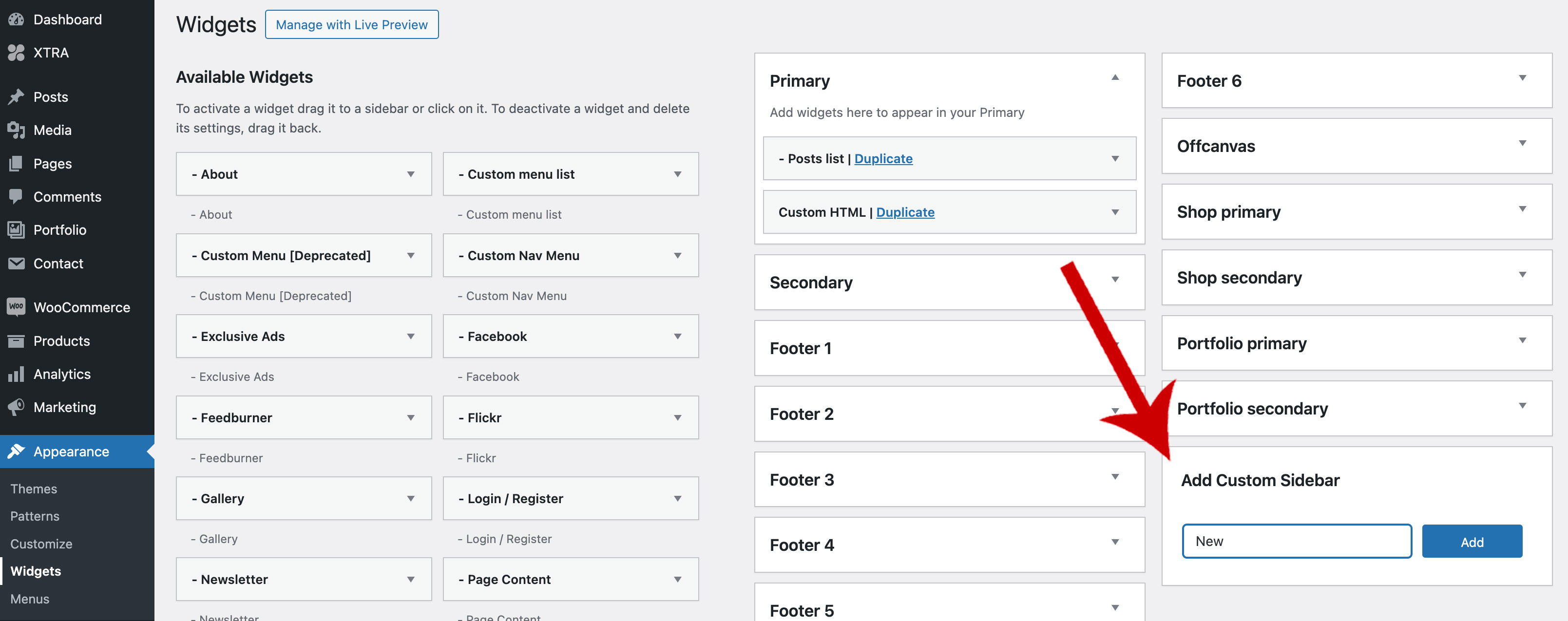 First, create your desired custom sidebar. You can create a new sidebar through the following path.