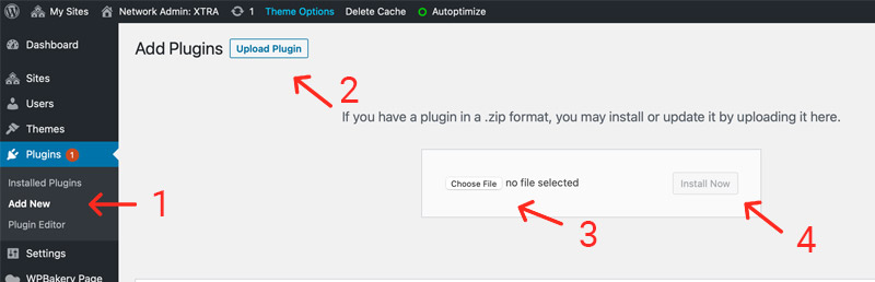 Installation of plugins is exactly like step 02, but this time you need to unzip plugin ZIP file and upload plugin folder into wp-content > plugins directory. Then go to your site dashboard and enable theme and plugins.