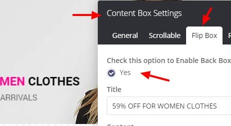 Now you can edit Front elements inside Content Box, Finally again edit Content Box and under Flip Box tab, Turn it ON by checking first option.