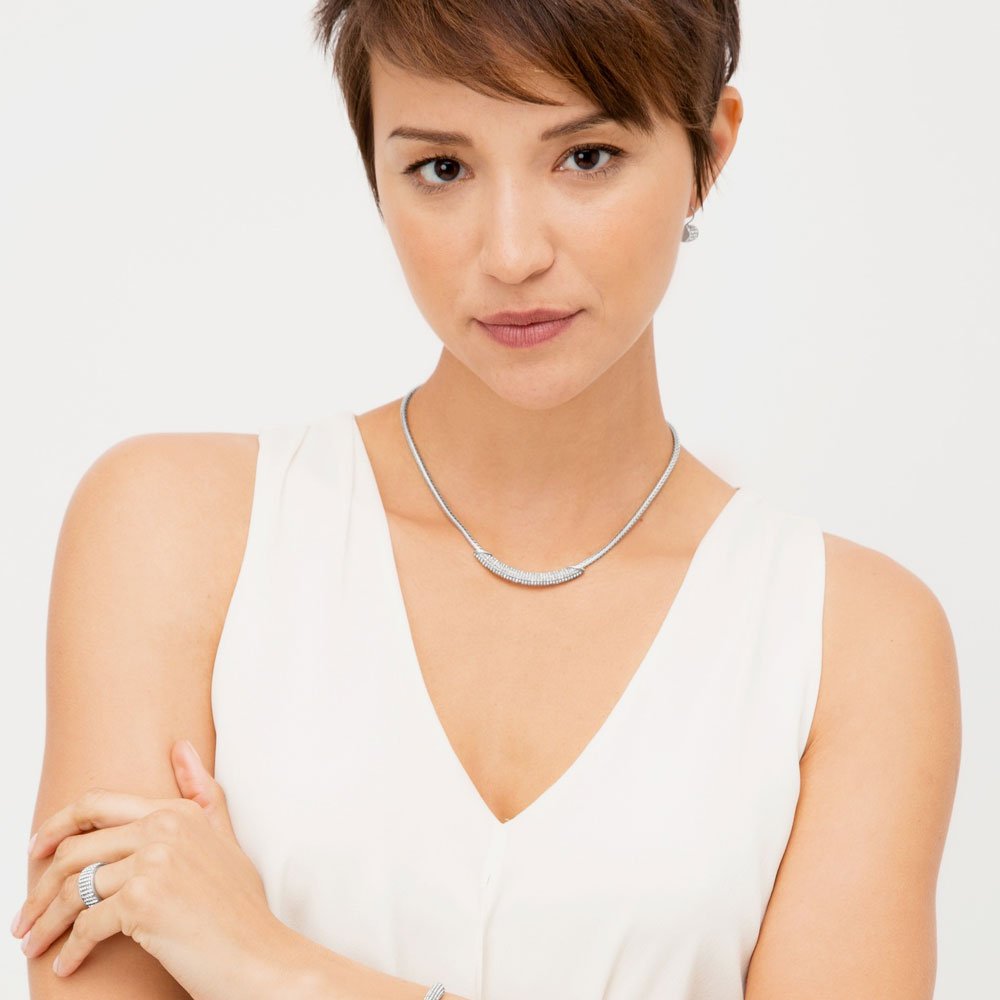 From the Xtra Jewelry Theme Collection, this captivating 14K white gold bridal set offers incomparable beauty and unmatched quality. Timeless and elegant, this necklace features a mesmerizing 1/3 ct.